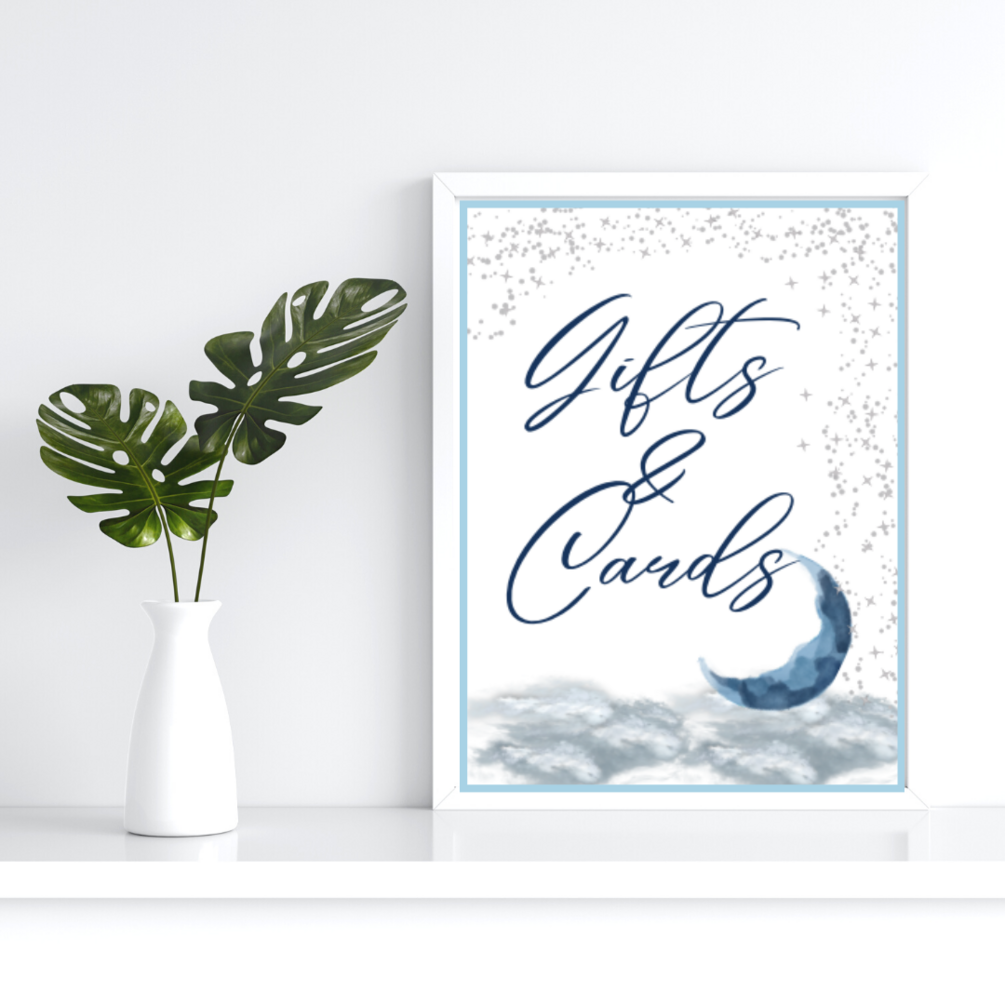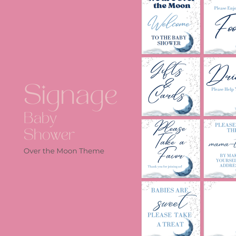 Inside this Baby Moon Design Shower Signage Pack you will find: