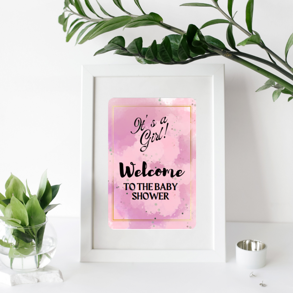 Inside this Pink Baby Design Shower Signage Pack you will find: